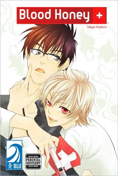 Blood Honey by Sakyou Yozakura (BLU, 1 volume one-shot) Yuki Akabane is descended from vampires. He doesn’t have much in the way of traditional vampiric traits but one, the love of drinking blood. To help him out with this endeavor Akabane works as a nurse in a blood donation clinic. Osamu Mayuzumi is a blood donor nut. He has a very hot blooded personality and the only way to keep his temper in check is by donating blood. But Mayzumi has a fear of needles and the only nurse who has been able to draw his blood without any pain is Akabane. Because of that Mayuzumi is constantly in Akabane’s clinic. One evening Mayuzumi showed up with a friend’s ID so he could have his blood drawn. Akabane reluctantly draws the minimal amount but doesn’t feel like he should include Mayuzumi’s blood with the rest of the vials so he decides to have a snack. It turns out that his donor nut has the most delicious tasting blood. When Mayuzumi shows up again Akabane has a proposition, since Mayuzumi wants his blood drawn often and it can only be drawn by Akabane, how about they meet at Akabane’s place? It’s a match made in blood heaven.I love this title. I read it in scanlation form and was ecstatic when I heard it was licensed. As soon as it was available for preorder at Amazon it was in my shopping cart faster than the speed of light. The art is adorable, the story is charming and it is definitely a great read. The characters are fantastic and are rather funny. There isn’t much in the way of sex for our main pairing but the secondary characters definitely get hot and heavy. Those characters are just as enjoyable as our main couple. It’s definitely worth spending some time with.